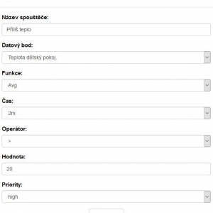 Upozornění na problém, který se stane ve Vašem systému (překročení teploty, nezavřené dveře, porucha čidla...).