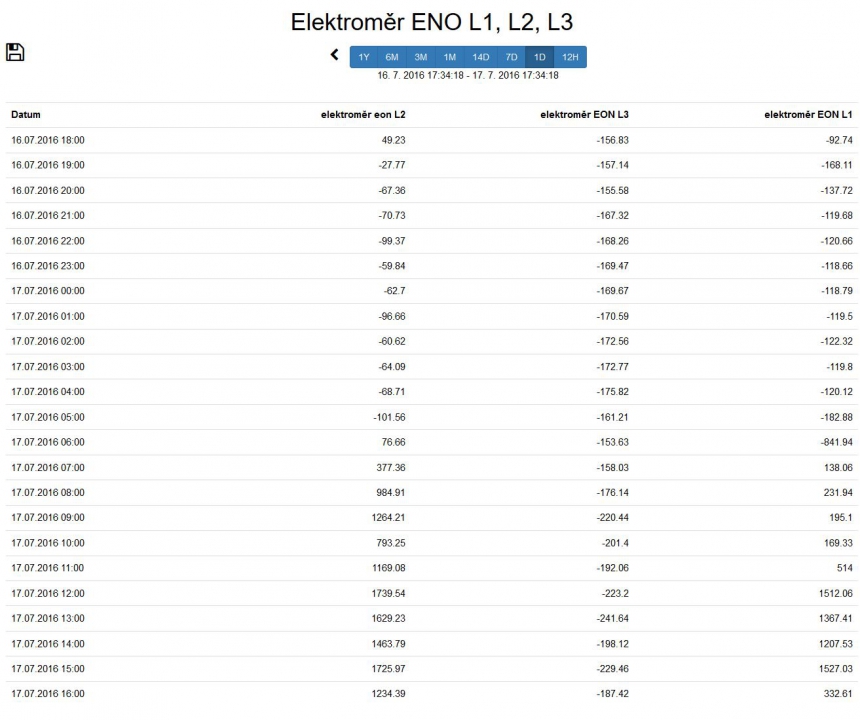 Možnost jednoduchého exportu měřených dat do excelu z Vašeho elektroměru.