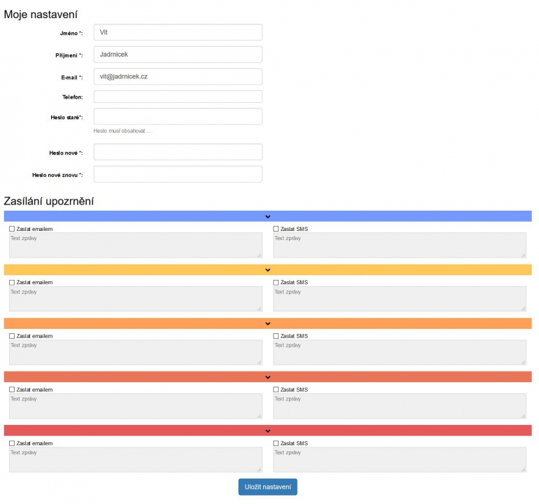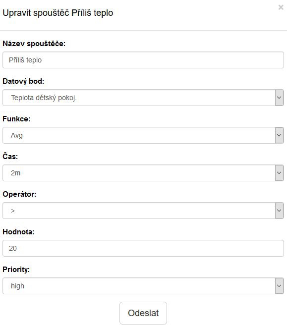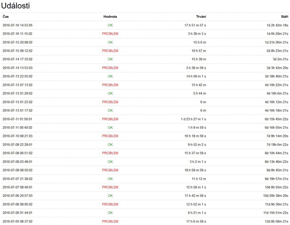Upozornění na problém, který se stane ve Vašem systému (překročení teploty, nezavřené dveře, porucha čidla...).